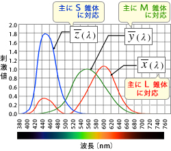 三刺激値 X、Y、Z と 視細胞( L 、 M 、 S 錐体)との関係