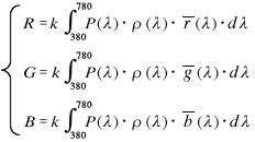 F ( λ ) + r ( λ )・[ R ]≡ g ( λ )・[ G ]+ b ( λ )・[ B ]