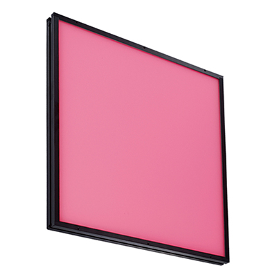 四角形の導光拡散板の外周にLEDを埋め込むように配置。フラットな発光面から拡散光を照射。 厚さが最小6mm(LFL-612/LFL-1012/LFL-50)の薄型設計のため、省スペース設置が可能。