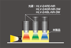 マイクロ・ファイバ・ヘッド(HFSシリーズ・HFRシリーズ)専用光源。 ワークに対して最適な照射色を実現するフルカラー。 注:これらの照明には、スポット照明用の出力端子を備えた電源が必要です。使用できる電源は、照明の入力電流によって異なります。詳細については、照明の型式ごとのページで[電源]欄を参照してください