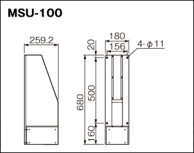 幅180mm x 奥行き259.2mm x 高さ680mmの赤色光照明。
