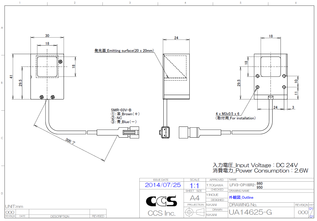幅30mm x 奥行き41mm x 高さ24mmの赤外照明。