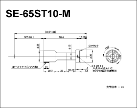 倍率が1.0倍の高解像度テレセントリックレンズ。ストレートタイプ。作動距離65.1mm。