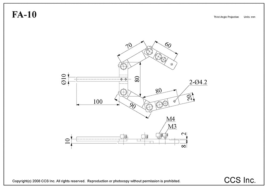 ワークテストや仮セッティングに最適な固定治具。本体の取り付けロッド部がφ10mm。照明固定用ネジがM3とM4の2種類を標準装備。