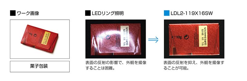 バー照明は、ワークに合わせて照射方向や照射角度を自由に調節できるため、最適な撮像を可能にします。