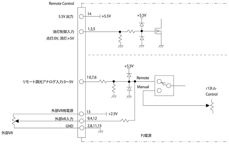 リモート調光と外部VRは、いずれか使用可能です。(同時使用できません。)